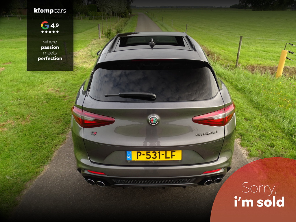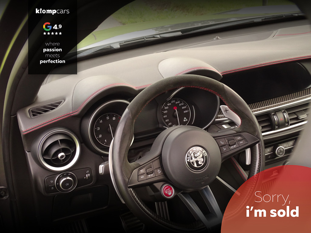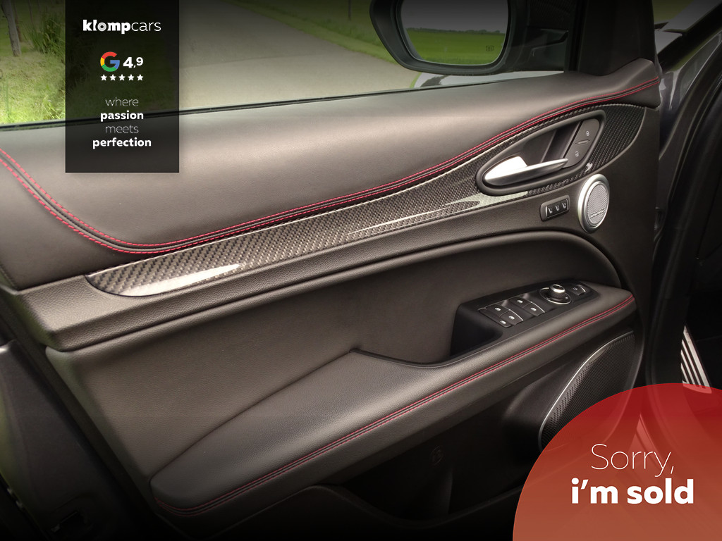 Als liefhebber van mooie auto's heeft u altijd een goede reden om deze prachtige beelden te bekijken en alle foto's op u in te laten werken.. de letters zijn informatief, maar moeten natuurlijk kloppen. Gelukkig is een Stelvio Q eigenlijk altijd al compleet dus over de standaard uitrusting hoeven we u vast niet bij te praten. Het valt al snel op dat deze Q naast de al uitgebreide standaard uitrusting ook nog is voorzien van een SCHUIFDAK en DAKRAILS, de kleur van de auto is iets persoonlijks, de voorkeuren bij deze kleuren laten zich wel raden, geen opvallende kleur maar in de tint is hij opvallend mooi, en zéker voor een liefhebber die ook een beetje aan de uitstraling van een auto moet denken.. Gedistingeerd mooi zullen we maar zeggen. Zowel sportief al zakelijk-chique zou je hem kunnen typeren. Maar dan de belangrijkste... wanneer komt het tot een ritje in deze 6-pitter? Dat is als je de feiten op een rijtje hebt gezet, en je de sportzetel aantrekt, het half alcantara sportstuur vastpakt en hem in de Sportstand mag gaan uitlaten.... En wanneer de adrenaline alweer een beetje taant, touren we gewoon op comfortabele Normal-stand over Neerlands wegen om vervolgens weer fris uit te stappen. Kortom een alleskunner die alle kunstjes kent. Bovenal maakt natuurlijk de verschijning deze QV tot een ware nekkendraaier. En zeker wanneer je al op - of terugschakelend je en weg baant kun je op menig duimpje rekenen. Over uitlaten gesproken... veel mensen verwachten dat een Akrapovic uitlaat het summum is.... echter wij zijn van mening dat de originele uitlaat van de Q het perfecte geluid levert. Juist bij het overschakelen is de donkere grom nog mooier hoorbaar. Kortom, 1 groot feest in deze Sport-SUV.