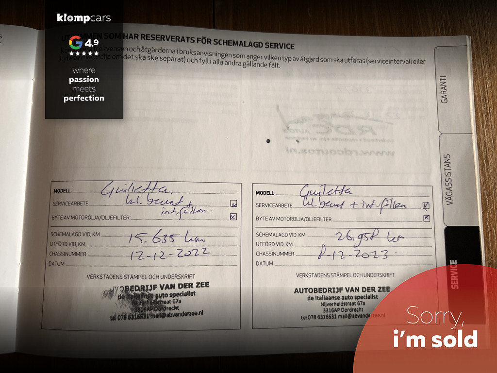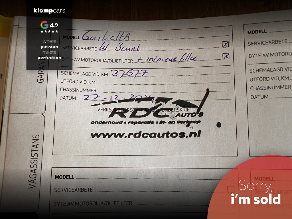 Uw online zoektocht online nog verder uitbreiden, dan is onze voorraad voor u zeker interessant! Maak een shortlist van uw favoriete Alfa Romeo en neem contact met ons op! Wij zijn op telefonisch bereikbaar van 9.00 tot 17.00 van maandag t/m zaterdag op 0341-759350 of rechtstreeks met de verkoop op 06-86804124 (ook via whatsapp), Wilt u graag nóg meer zien van deze auto? Ga dan naar klompcars.nl voor de complete fotoserie. Lees ook de reviews op Google en Opiness van de kopers die u voorgingen. Op onze eigen website vind u nog meer informatie en foto's van deze auto, ga naar www.klompcars.nl en laat u overtuigen. U kunt online een offerte aanvragen en de foto's van uw inruilauto uploaden. Dit mag ook per Whatsapp: druk dan op de button bij de advertentie en stel uw vraag of stuur uw inruilvoertuig. U kunt de auto uitgebreid komen bekijken en proefrijden in Nunspeet, we maken dan ook gelijk een goed passende prijs voor uw inruilauto. De openingstijden zijn maandag t/m zaterdag van 9.00 tot 17.00. Door onze snel wisselende voorraad reserveren wij geen auto's. Om te voorkomen dat u voor niets aanrijdt, is het verstandig om voor vertrek even te bellen voor de beschikbaarheid van de auto waarin u bent geïnteresseerd. Wij staan garant voor een prachtig aanbod met eerlijke en smaakvolle auto's voorzien van een sluitende historie en een sublieme staat. Welkom bij Klompcars! 'Smaakmakers op de Veluwe'.