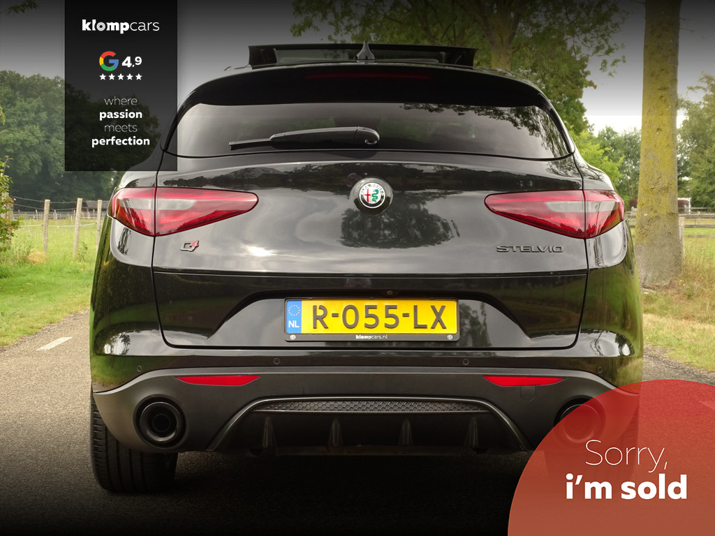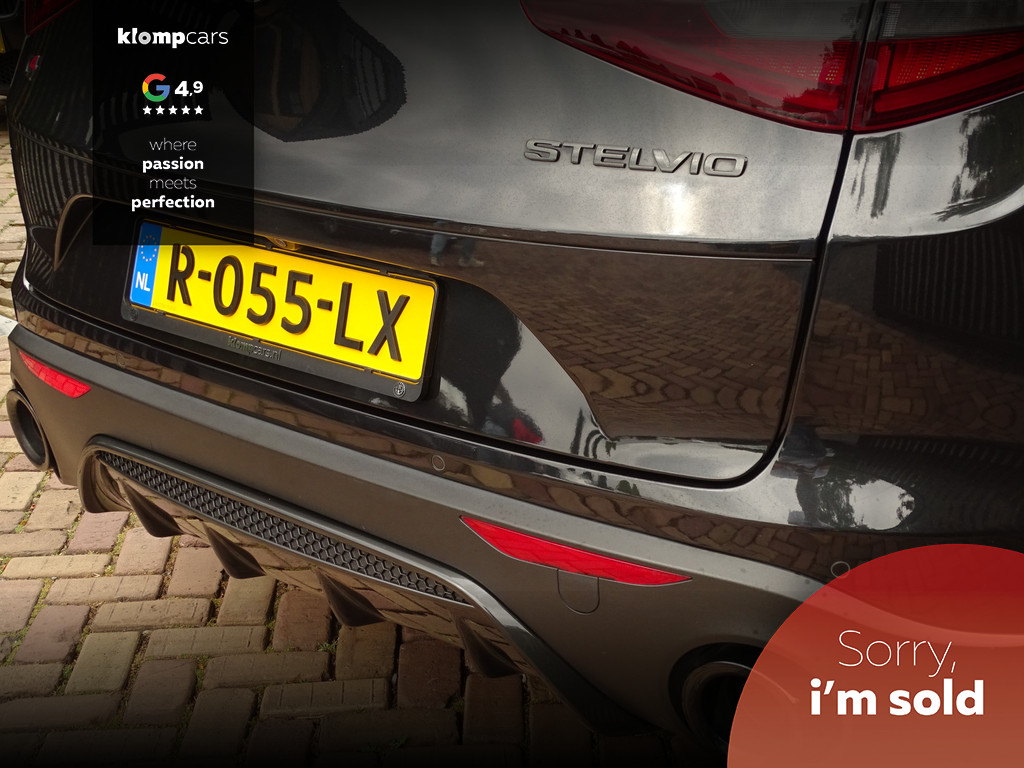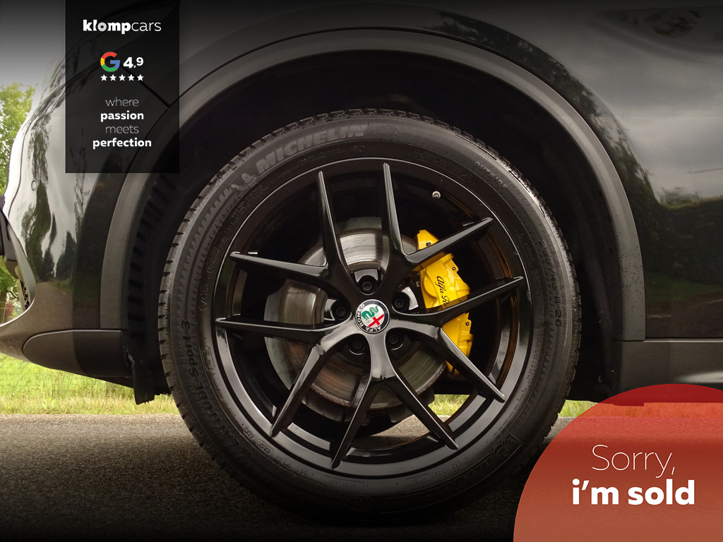 Deze All Black sensatie van de Stelvio is op dit moment een graag geziene verschijning. Zonder chrome details, alles is zwart... BEHALVE... de remklauwen, die zijn gespoten in Giallo Corsa, de warme gele kleur die deze auto een extra accent geeft.