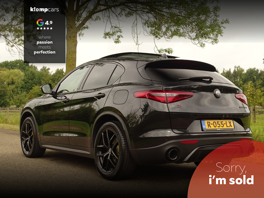 Deze All Black sensatie van de Stelvio is op dit moment een graag geziene verschijning. Zonder chrome details, alles is zwart... BEHALVE... de remklauwen, die zijn gespoten in Giallo Corsa, de warme gele kleur die deze auto een extra accent geeft.