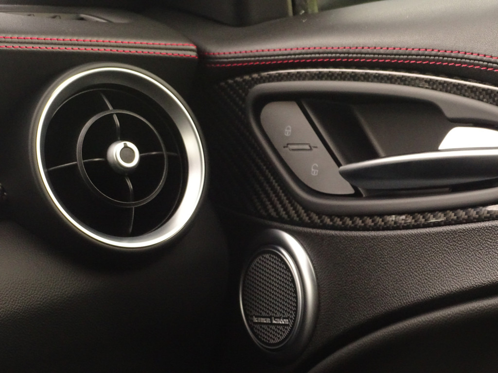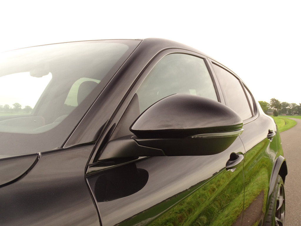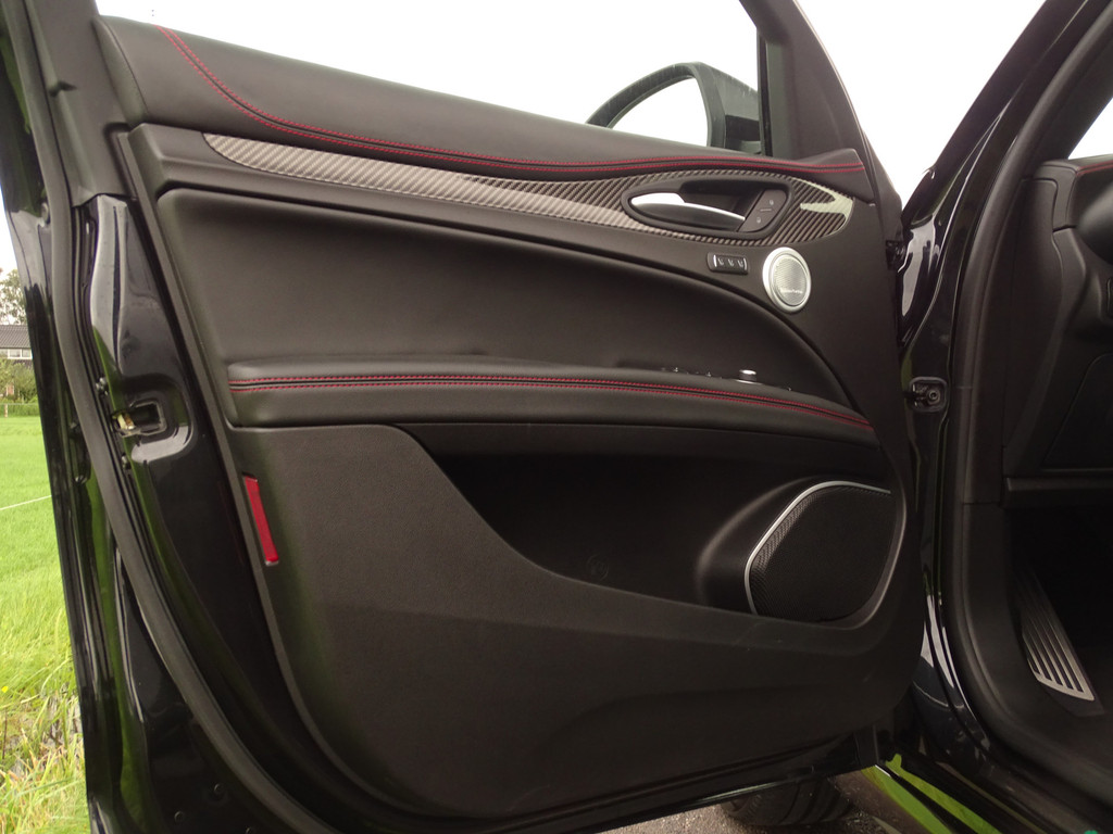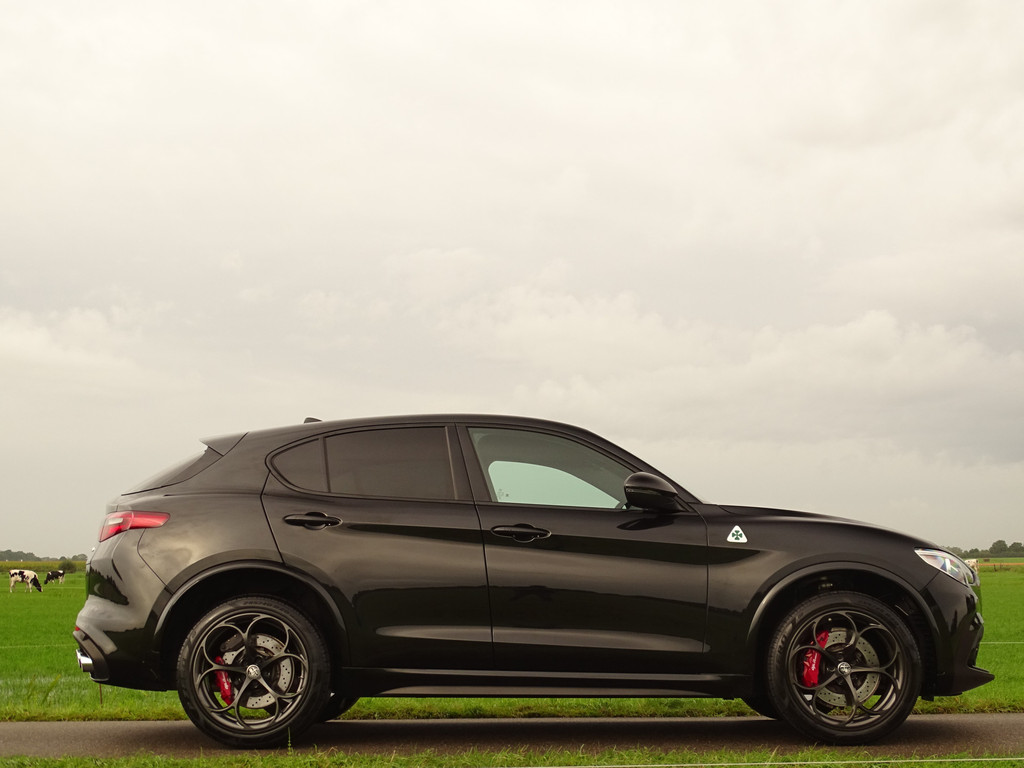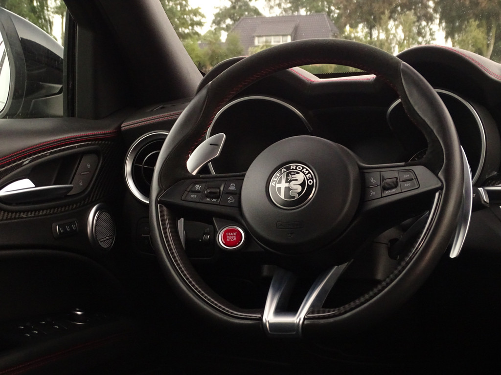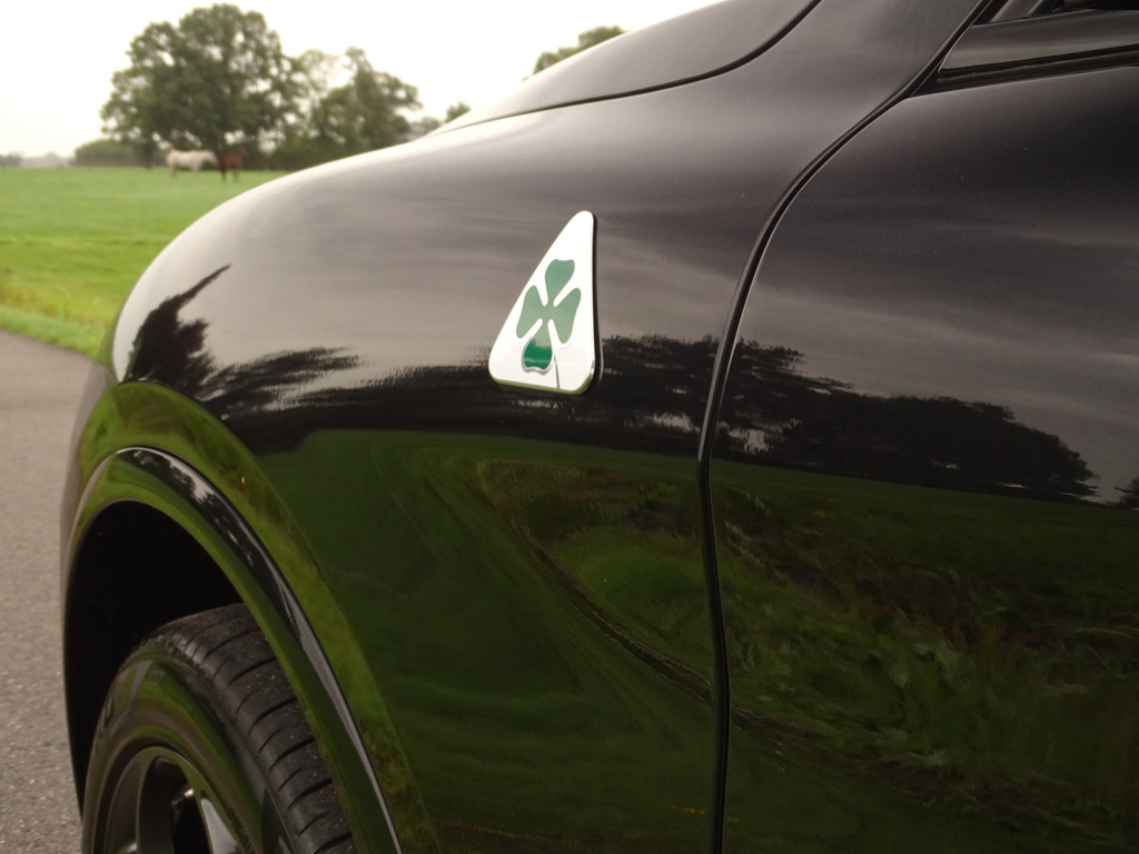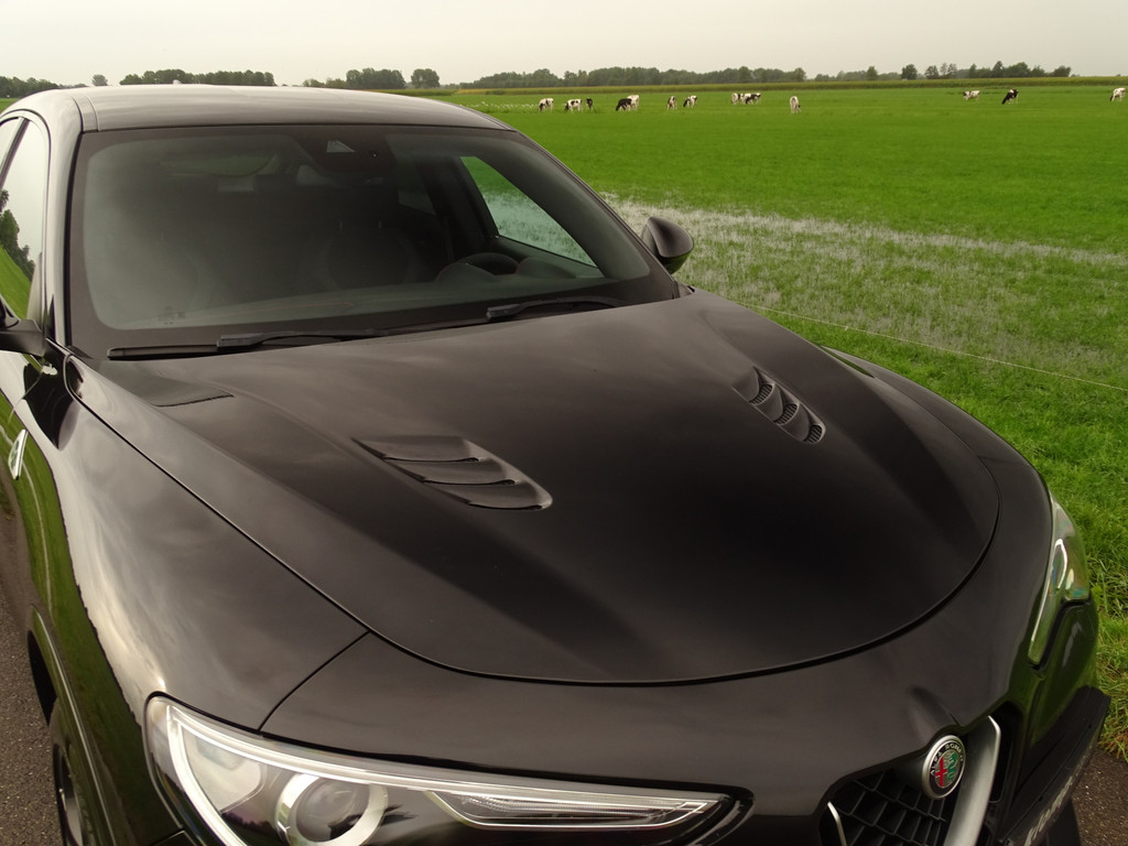 Als liefhebber van mooie auto's heeft u altijd een goede reden om deze prachtige beelden te bekijken en alle foto's op u in te laten werken.. Gelukkig is een Stelvio Q eigenlijk altijd al compleet dus over de standaard uitrusting hoeven we u vast niet bij te praten. Het valt al snel op dat deze Q naast de al uitgebreide standaard uitrusting ook nog is voorzien van een speciale knop naast de DNA knop, dit is om het geluid wat je normaal in de Race Modus hebt ook in de andere standen, N en A, kunt activeren, beleving en veiligheid in 1 knop zullen we maar zeggen. De kleur van de auto is iets persoonlijks, de voorkeuren bij deze kleuren laten zich wel raden, geen opvallende kleur maar wanneer de zon gaat schijnen valt het ineens op hoeveel tinten metallic deze zwarte Q heeft... Gedistingeerd mooi zullen we maar zeggen. Zowel sportief al zakelijk-chique zou je hem kunnen typeren. Maar dan de belangrijkste... wanneer komt het tot een ritje in deze 6-pitter? Dat is als je de feiten op een rijtje hebt gezet, en je de sportzetel aantrekt, het half alcantara sportstuur vastpakt en hem in de Sportstand mag gaan uitlaten.... En wanneer de adrenaline alweer een beetje taant, touren we gewoon op comfortabele Normal-stand over Neerlands wegen om vervolgens weer fris uit te stappen. Kortom een alleskunner die alle kunstjes kent. Bovenal maakt natuurlijk de verschijning deze QV tot een ware nekkendraaier. En zeker wanneer je al op - of terugschakelend je en weg baant kun je op menig duimpje rekenen. Over uitlaten gesproken... veel mensen verwachten dat een Akrapovic uitlaat het summum is.... echter wij zijn van mening dat de originele uitlaat van de QV het perfecte geluid levert. Juist bij het overschakelen is de donkere grom nog mooier hoorbaar. Kortom, 1 groot feest in deze Sport-SUV.