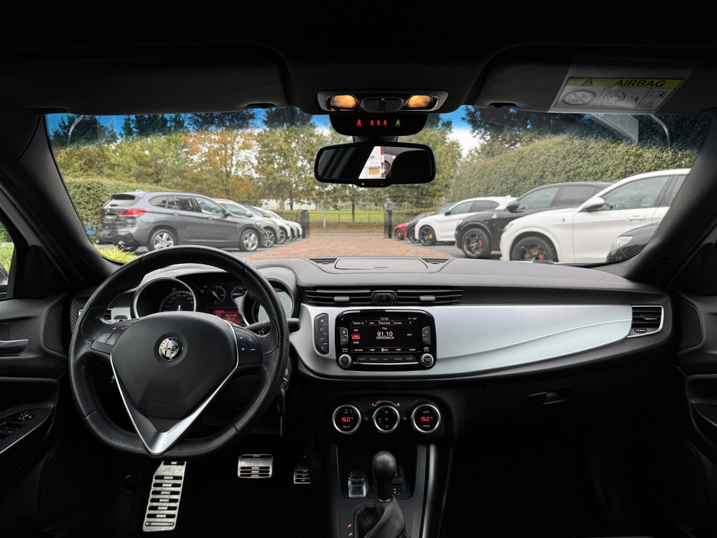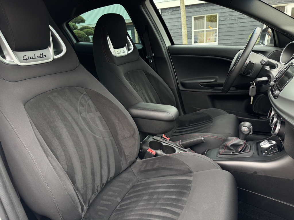 Een prachtige en zeer unieke uitvoering van de al rijk uitgeruste Sprint editie. Wat deze auto absoluut uniek maakt zijn de fantastische schaalstoelen, Sportstoelen met beugels en aangesloten hoofdsteunen. Uitgervoerd in Sprintstof met rode stiksel en een alcantara zitvlak en rugvlak. Gecombineerd met wit en 18 inch 8C Velgen van de accessoirelijst van de GIuliette is dit een wel hele bijzondere verschijning.