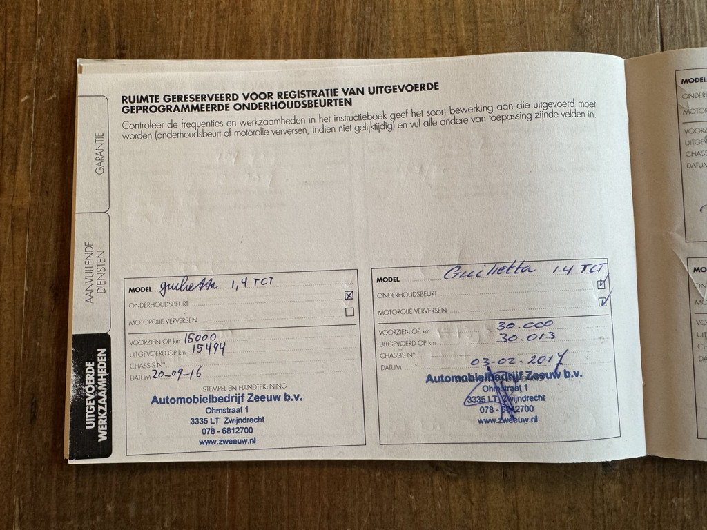 Naast de uitstraling is ook de staat en de historie natuurlijk om even bij stil te staan. Met een vol afgestempeld boekje en een hele mooie staat van dienst mag hij zich een prachtige auto noemen. De volgende opties en accessoires zijn ook nog aanwezig op deze Giulietta: