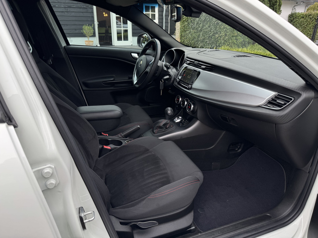 Een prachtige en zeer unieke uitvoering van de al rijk uitgeruste Sprint editie. Wat deze auto absoluut uniek maakt zijn de fantastische schaalstoelen, Sportstoelen met beugels en aangesloten hoofdsteunen. Uitgervoerd in Sprintstof met rode stiksel en een alcantara zitvlak en rugvlak. Gecombineerd met wit en 18 inch 8C Velgen van de accessoirelijst van de GIuliette is dit een wel hele bijzondere verschijning.