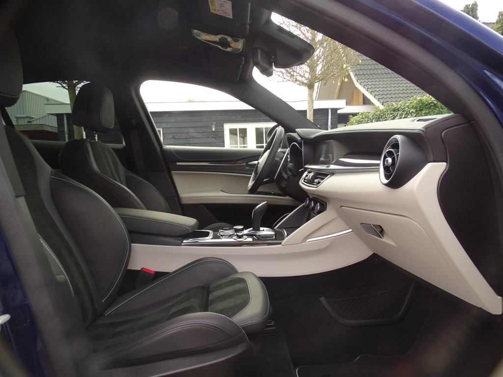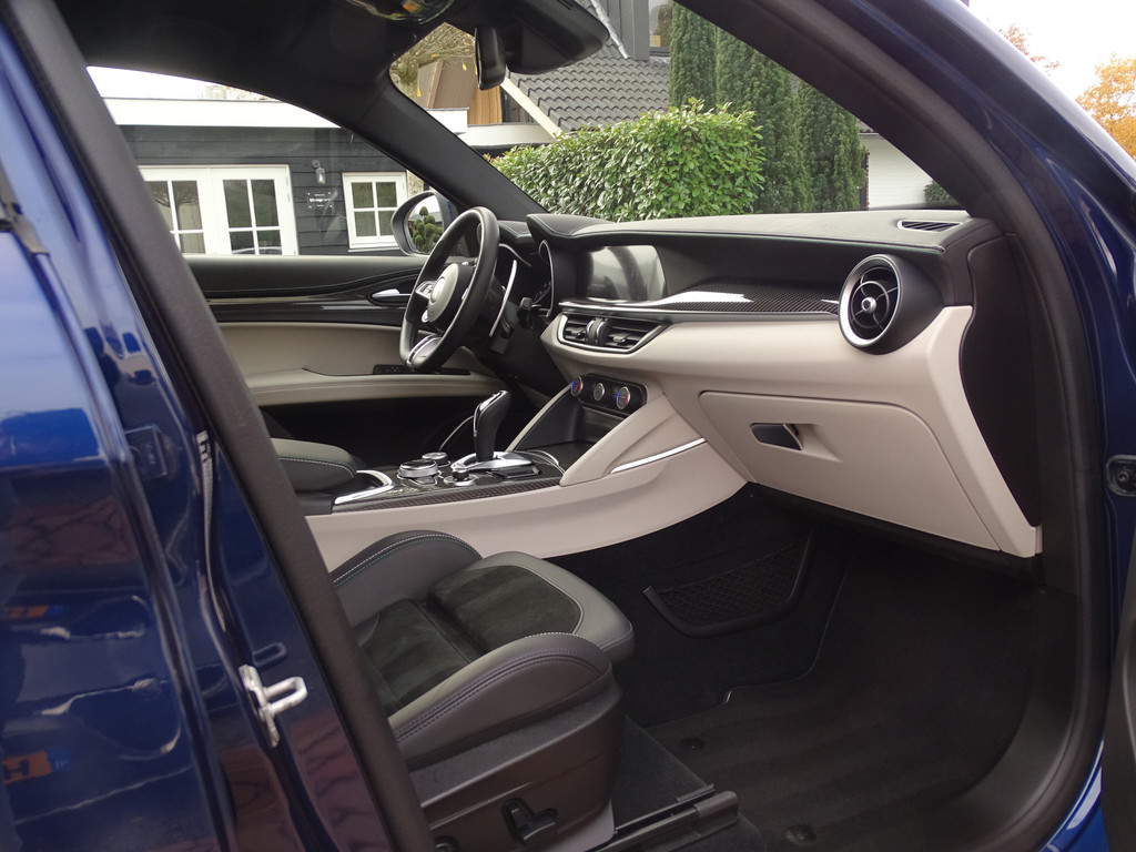 Wanneer je een Stelvio Q zelf besteld kun je hem kiezen zoals je hem zelf het liefste ziet. Dhr Krebs uit Oostenrijk gooide het eens over een andere boeg, hij koos ervoor om niet zoals de massa te zijn en alles behalve de lak zwart te bestellen, maar heeft juist voor lichtgrijs gekozen. Wat ons een betreft een diepe buiging, want dat is altijd even lastig kiezen vanaf een plaatje. Maar de complimenten zijn voor Dhr. Krebs want nog nooit hebben wij zo'n prachtige en sjieke interieursamenstelling gezien in een Stelvio Q. En wat heeft hij de auto super netjes gehouden, alles lijkt nog als nieuw van binnen. Geen smetje te vinden, de showroomgeur zit er nog in, het is alsof je in een splinternieuwe Q stapt. De 1e de beste.... dit geld statistisch gezien voor bijna alle liefhebbersauto's die wij kopen van de 1e eigenaar, deze man weet als geen ander wat hij nieuw voor dit klaverblaadje heeft neergeteld... dat is dan ook de enige verklaring waarom zowel de optische staat als de technische staat zo goed is. Onderscheidend in staat en uitstraling, dat is een feit! Vlak voor zijn pensioengerechtigde leeftijd heeft hij deze parel aangekocht is onze aanname, genoeg tijd dus om hem Alfawaardig te kunnen onderhouden en verzorgen.