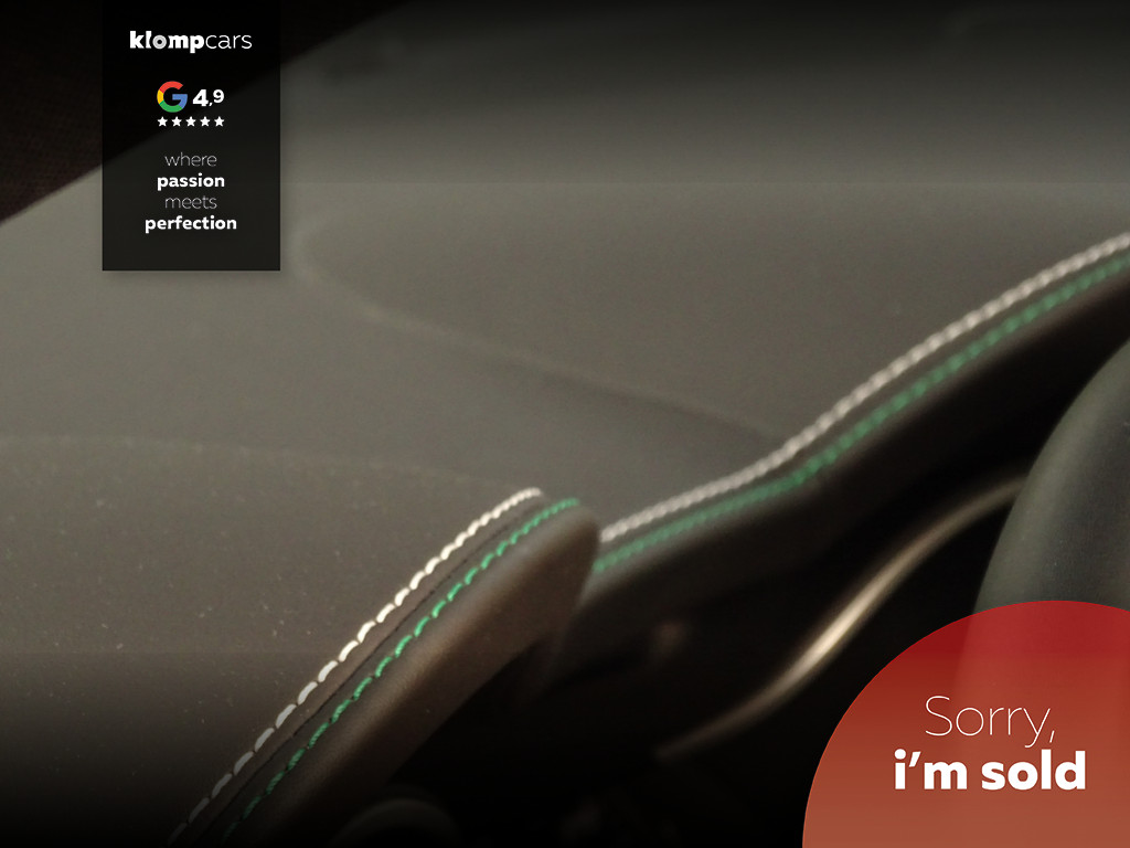 - witgrijze/groene stiksels op lederen dashboard en bekleding