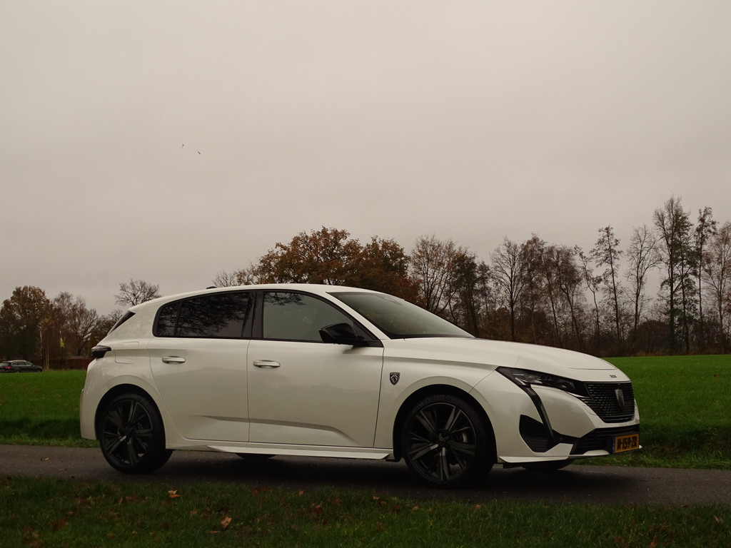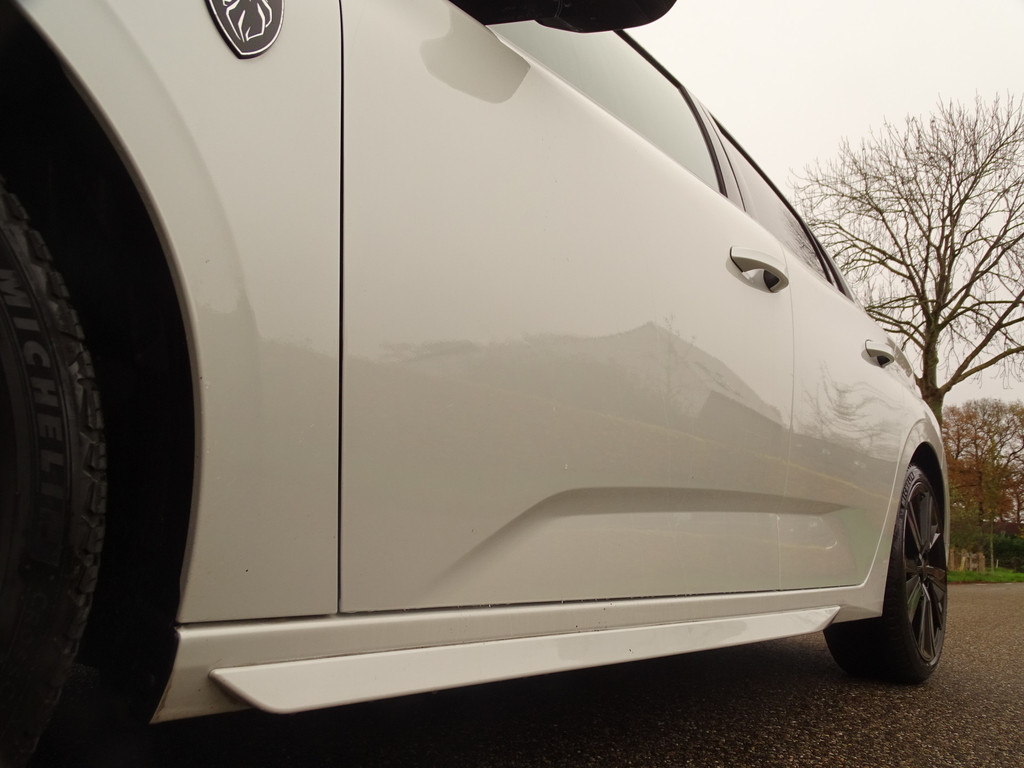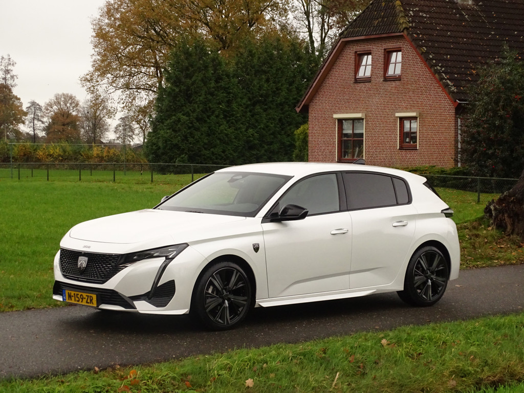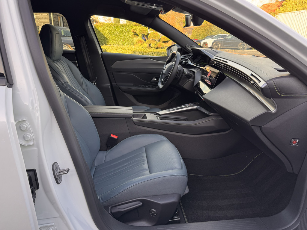 Een rijk uitgedoste Peugeot 308 GT, en dan niet alleen de GT opties maar ook nog weer extra opties bovenop de GT uitvoering. Wat is dit interieur uniek mooi icm de buitenlak een hele stijlvolle keus, het leer dat luistert naar de naam Naboo nappa blue is erg uniek. Over de lakkleur gesproken deze Blanc Nacre metaallak is speciaal, dus niet gewoon een witte maar de echte kleur voor deze fransoos.
