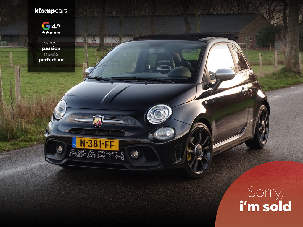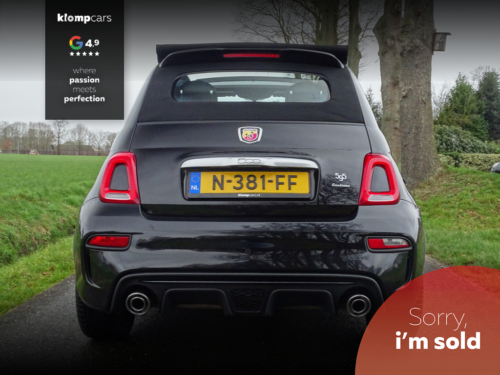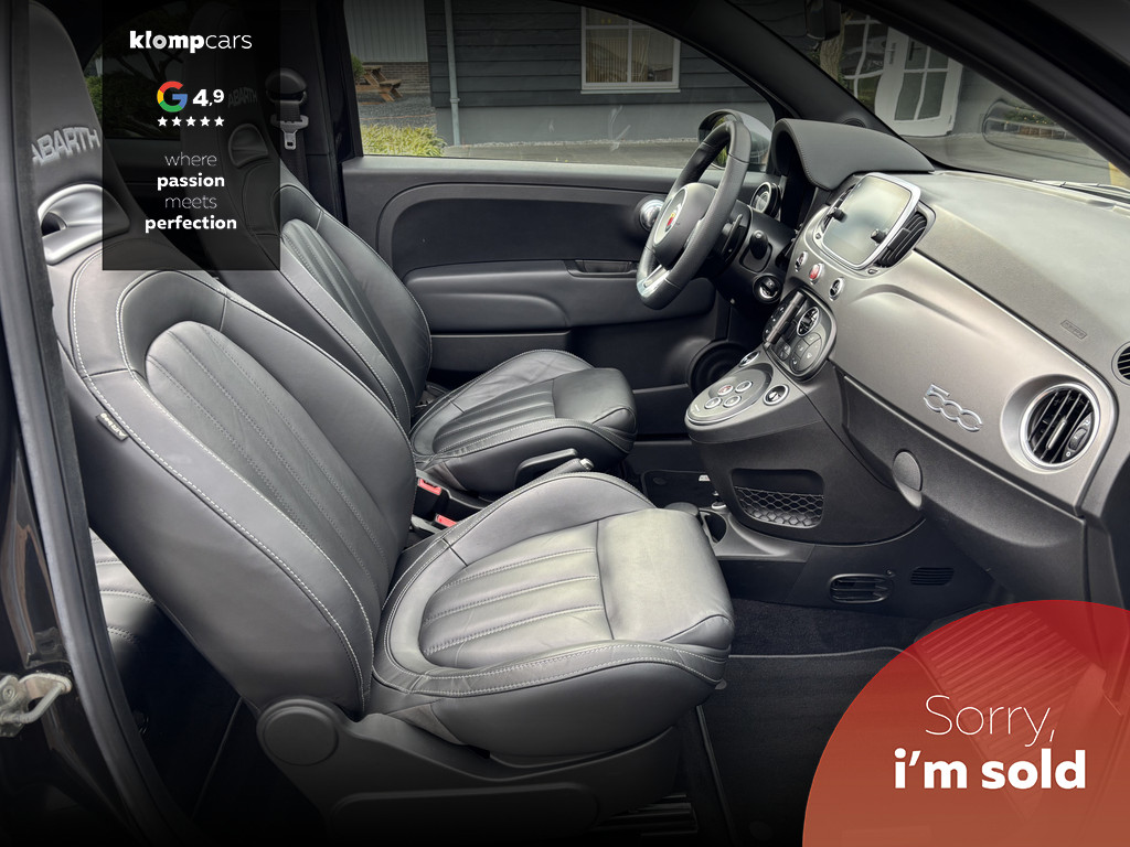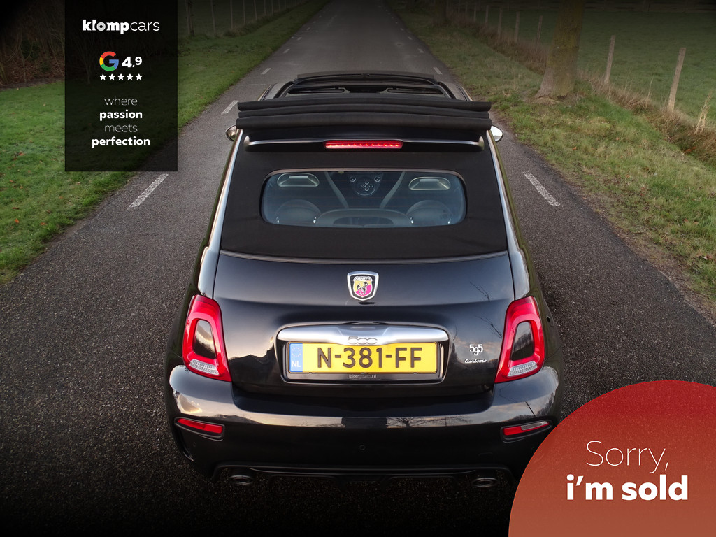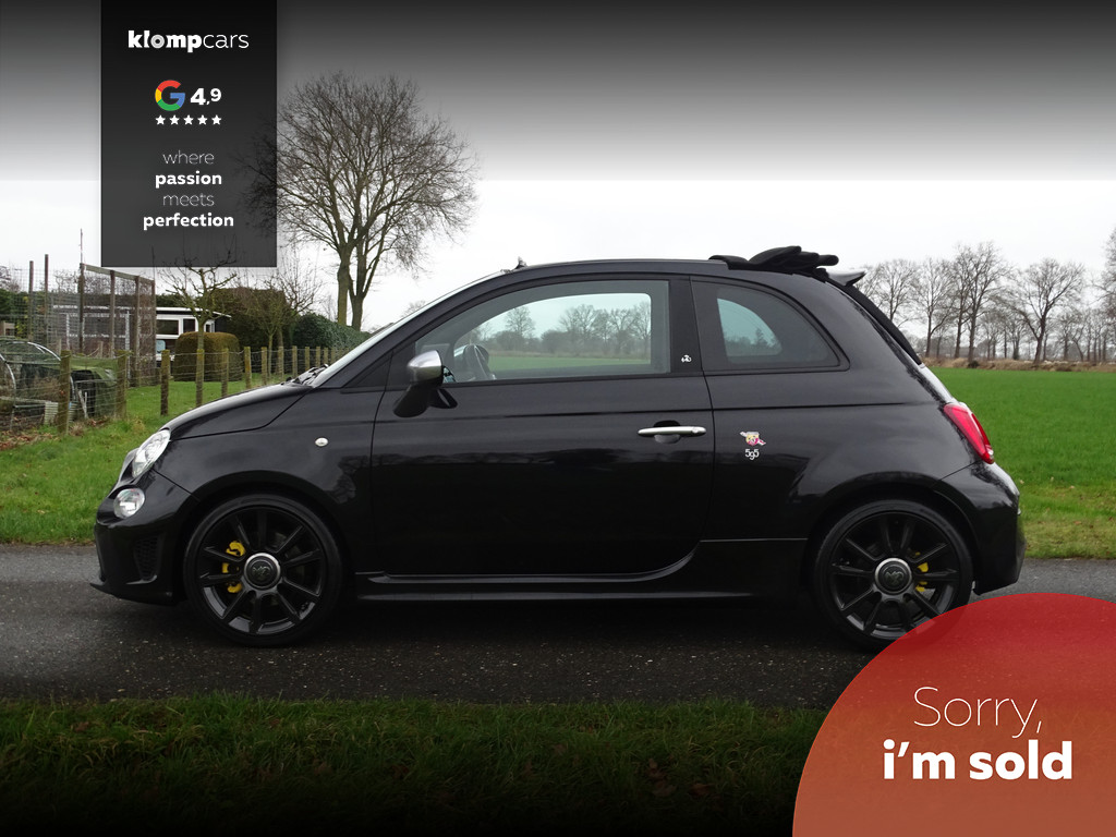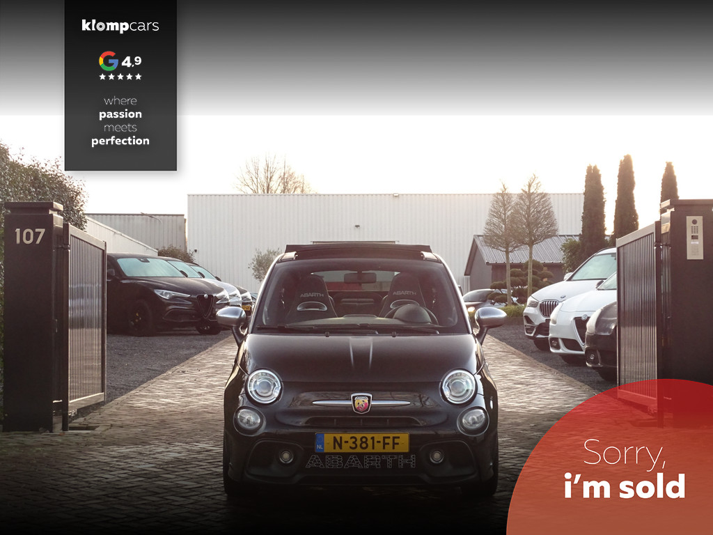 Een picture perfect deze Abarth 595 Cabrio Turismo in een zeer compleet jasje: Nero scorpione met Zwart leder! Heerlijk deze mooie zwarte metallic lak met de uiterst fraaie sportstoelen waar weer heel verfijnt de tekst "Abarth"ingestikt is maakt het weer een echte italiaan. Zelden zien we ze zo vol want bij deze 595 Turismo is de hele optielijst erop besteld en dat maakt het feest eigenlijk wel compleet. De 595 Turismo is standaard al heel compleet. We zullen de extra opties met u doornemen:Het open cabrio dak om van de zonnestralen en het geweldige geluid van wat de Abarth maakt te genieten, Xenon koplampen, led verlichting, grote 7 inch navigatie scherm, Geweldige Beats audio, Dimmende binnenspiegel, Climate control, prachtige optionele 17 inch velgen de mooiste velg onder de Abarth als u het ons vraagt. Wij hebben ze een volledige make over gegeven in Miron zwart Uiteraard moeten we u ook vertellen wat er onder de motorkap te vinden is: een 165 pk sterke 1.4 T-jet het betreft hier degene met de grote turbo gelijk aan een competizione 180 pk dit vermogen is daarom ook door H&S Corse met een tuning veilig naar 200pk gebracht.