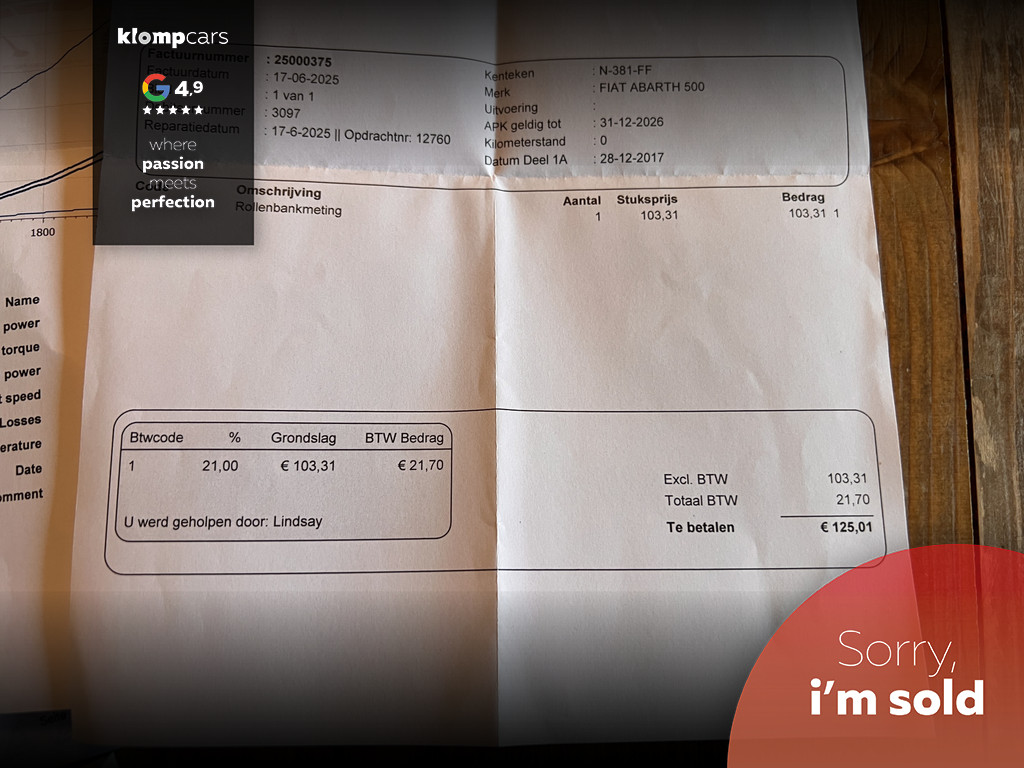 Het onderhoud is net uitgevoerd en ook voor een goede grip hebben wij al gezorgd door de auto te voorzien van 2 nieuwe voorbanden.