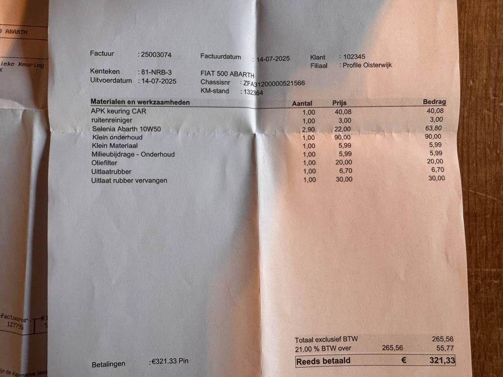 "De Abarth is in oktober 2013 gekocht met iets minder dan 35.000 km op de teller.