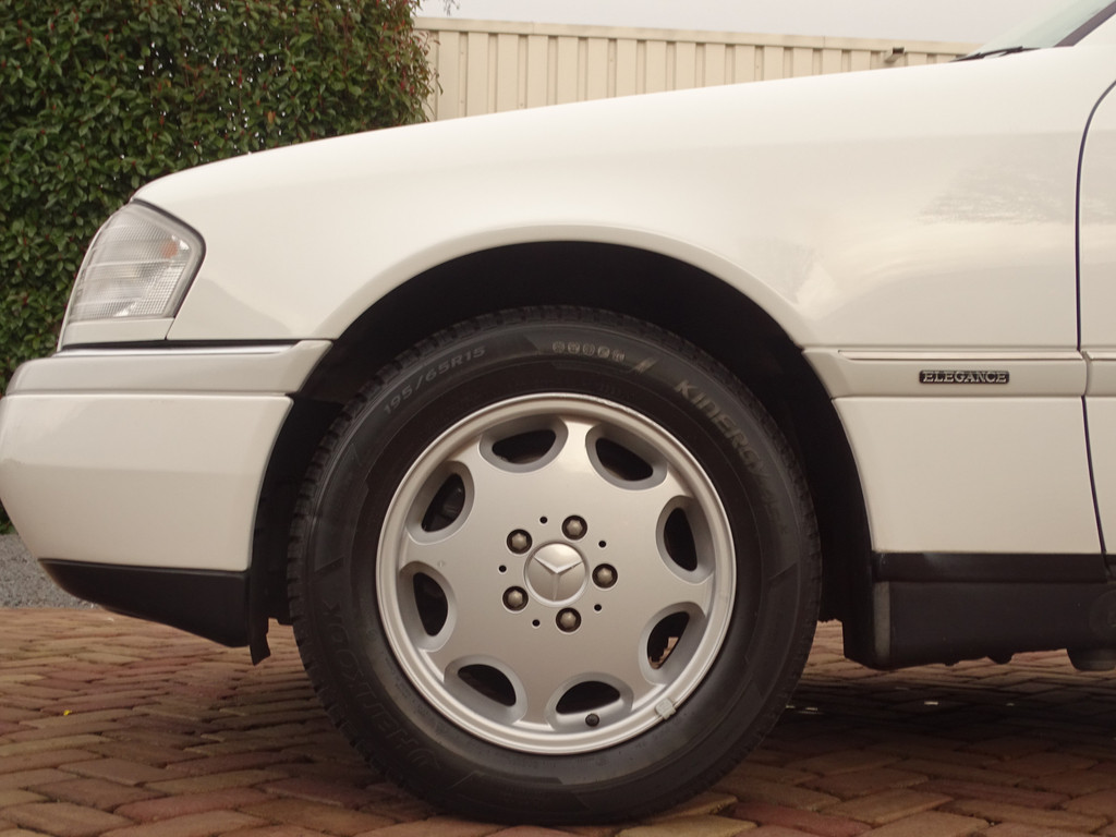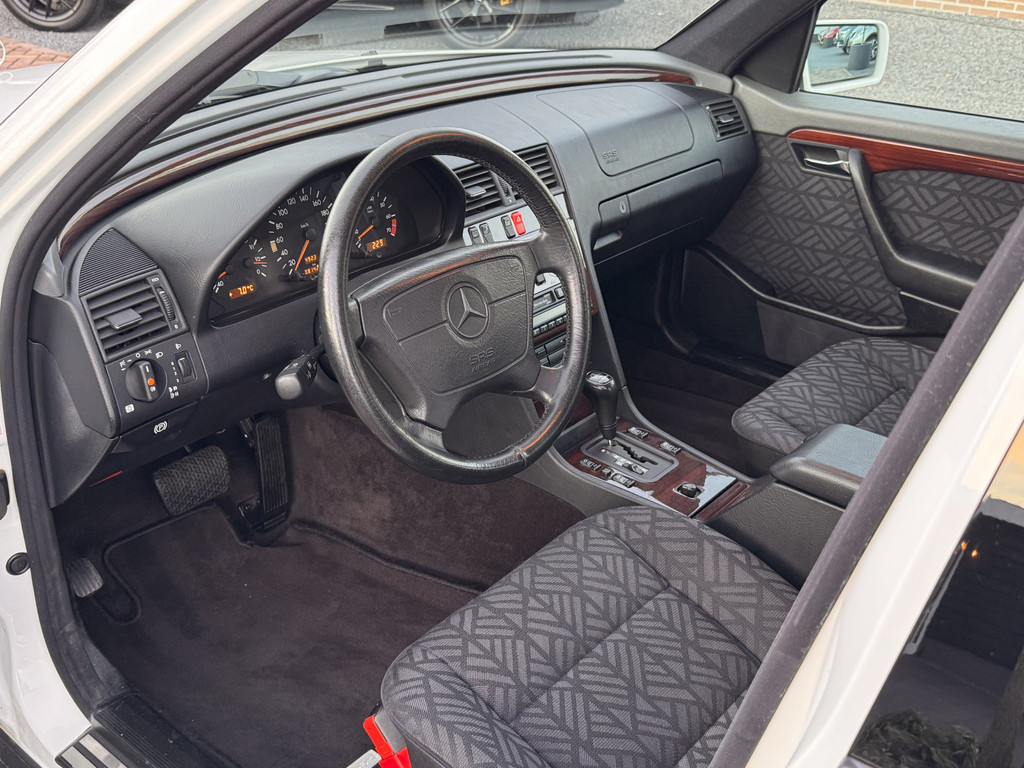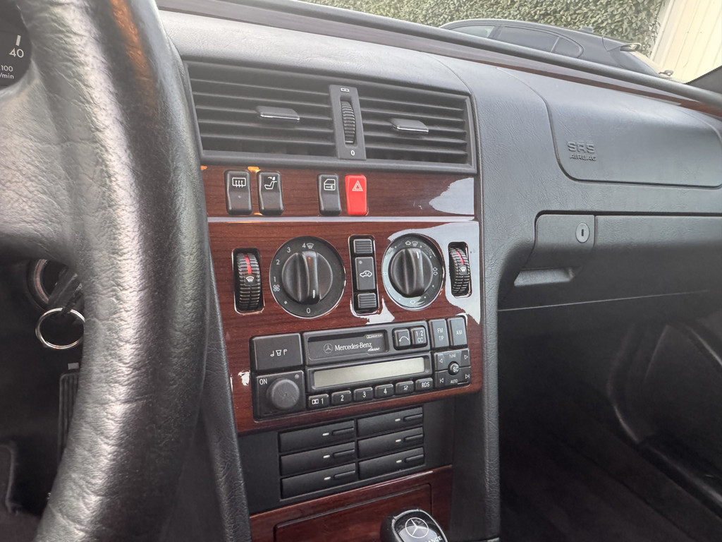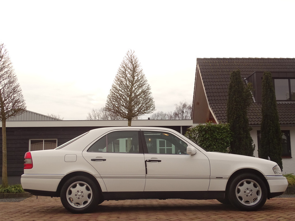 Mercedes was in 1995 zijn tijd ver vooruit en dat blijkt in deze C180 maar al te duidelijk. Het is namelijk een automaat. Uitgevoerd met het Elegance-pakket krijg je zelfs een schuifdak, lederen dashboard met prachtige houtinleg, comfortabele stoelen in nette staat en elektrische ramen. Onder de motorkap ligt de oersterke 1.8L 4 cilinder met 122 pk en 170 Nm koppel. Daarnaast verkeerd deze klassieker in erg nette staat, zowel van binnen als van buiten.