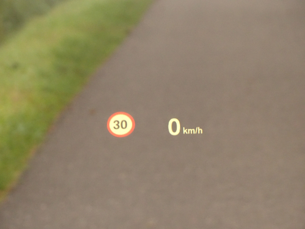 - head up display in de voorruit voor snelheid en meldingen